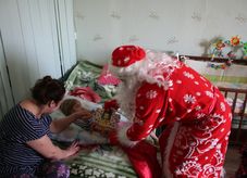 В один из январских дней Дед Мороз со своими помощниками – певчими храма прп. Серафима Саровского в Раеве, загрузив в свой красный мешок подарочки, которые вы - прихожане пожертвовали для ребят, отправился поздравлять детвору.